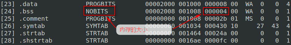 (2)sh_type,表示段的类型。段的类型有很多,常见的有SHT_PROGBITS,表示程序数据,SHT_SYMTAB表示符号表,SHT_STRTAB表示字符串表,还有专门存放构造函数数组段SHT_INIT_ARRAY,析构函数数组段SHT_FINI_ARRAY。