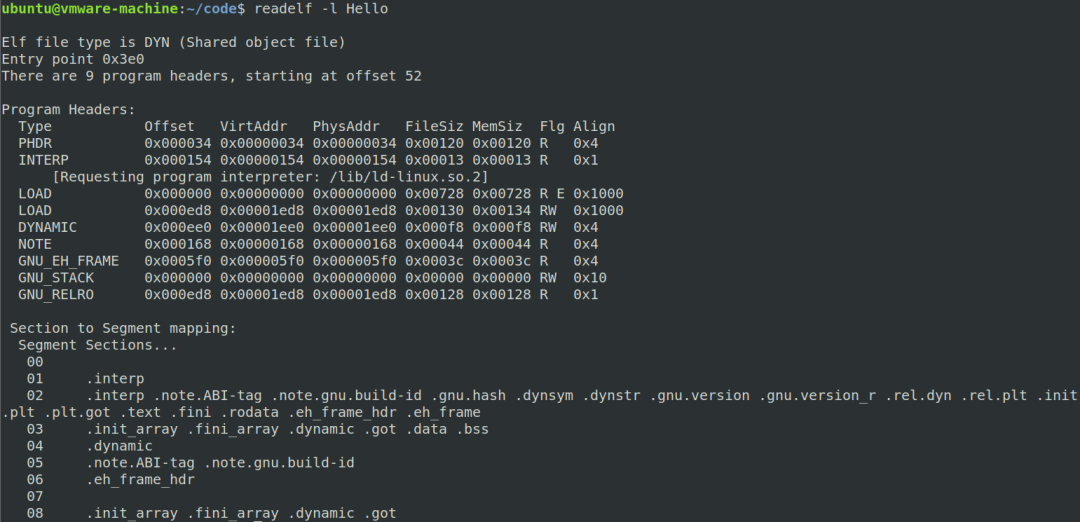 使用Linux下专用工具readelf来查看elf文件信息