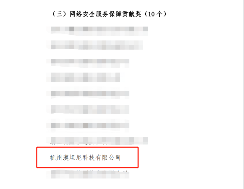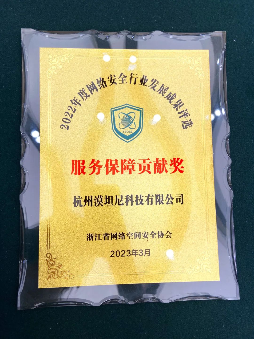 榜上有名|漠坦尼荣膺浙江省网络空间安全协会“网络安全服务保障贡献奖”