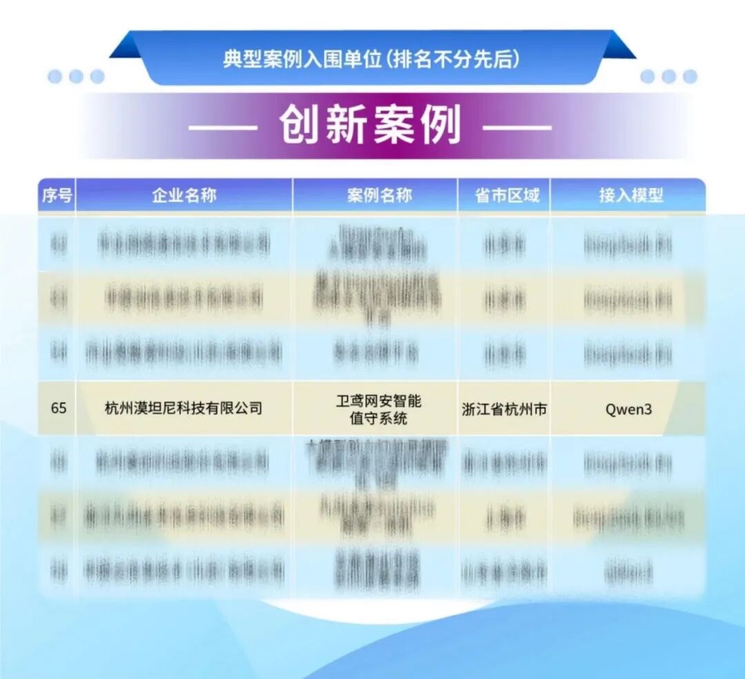 2025年7月3日,由中国信息通信研究院、中国通信标准化协会承办的全球数字经济大会在北京召开,杭州漠坦尼科技有限公司研发的“卫鸢网安智能值守系统”成功入选“开源大模型+”软件创新应用典型案例,展现了公司在人工智能与网络安全融合应用领域的创新实力。
